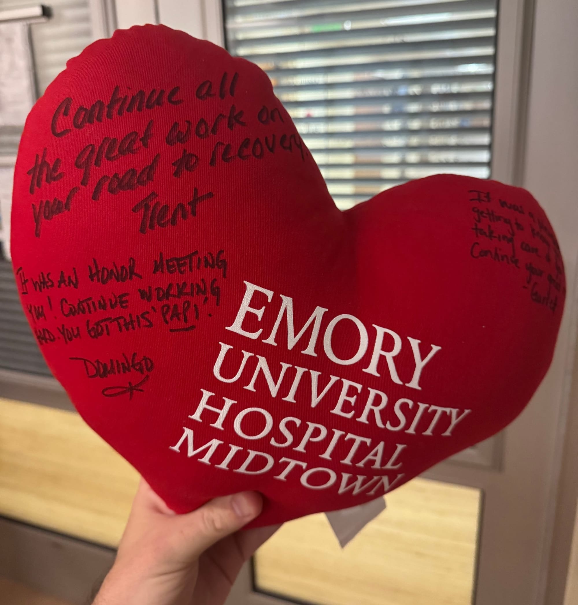 The nurses keep coming by to sign his heart pillow, which is becoming bittersweet: Josh will be just down the hall, but not on the Cardiac ICU unit anymore, so he will have different nurses attending to him. I've gotten teary eyed as we've said a soft "so long" to the most amazing people I've ever met. We'll post some pictures of Josh with his awesome nurses as soon as they can slow down long enough to take one.